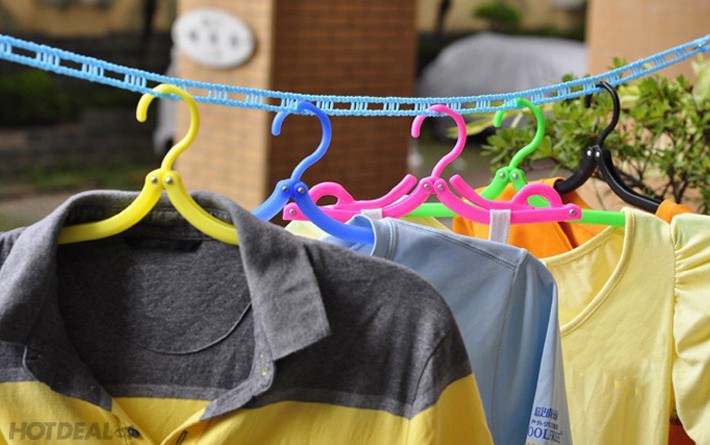 Khi phơi quần áo ướt, các móc phơi được treo vào lỗ khoen để cố định khoảng cách, quần áo của bạn sẽ không dính vào nhau, không dồn lại một điểm dẫn đến lâu khô và rây màu lẫn nhau, đặc biệt là không tạo thành những nếp nhăn nhúm với những chất vải dễ nhăn như vải đũi, lanh,….